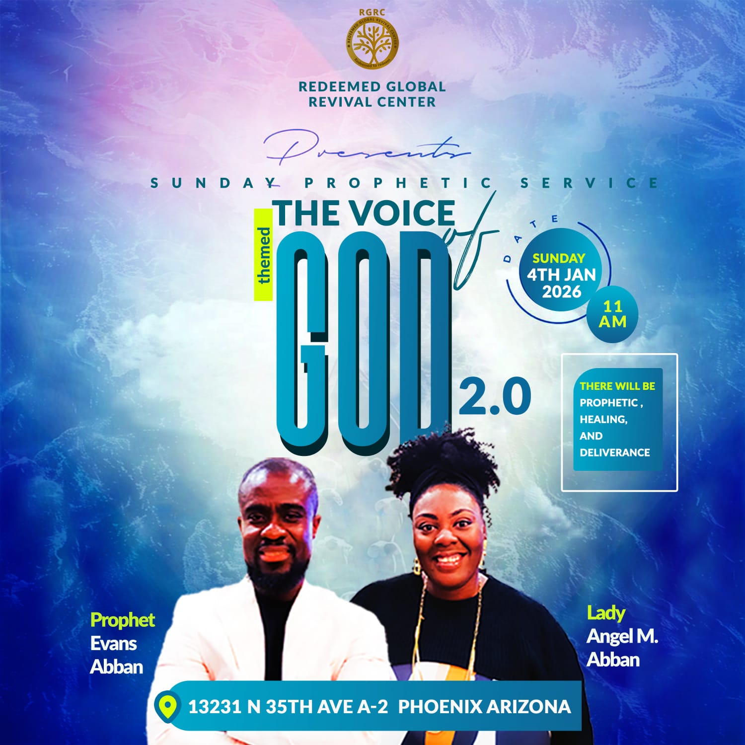 This event has passed. « CROSS OVER Service SUNDAY PROPHETIC SERVICE » The Voice of GOD 2.0 January 3, 2026 By RGRC 0 Comment 66 Views Tags: Ministry + Google Calendar+ iCal Export Details Date: January 4 Time: 11:00 am - 4:00 pm Event Category:Ministry Venue 13231 N 35TH AVE A-2 PHOENIX ARIZONA Organizer Redeemed Global Revival Center